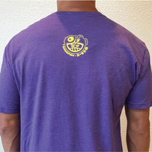 A bold one-color shisa, or Okinawan guardian lion-dog. Popular Okinawan proverb 'Ichariba-Chode', meaning 'once we meet we are friends for life' is written above. Purple and yellow- the colors of the Ryukyu Islands.